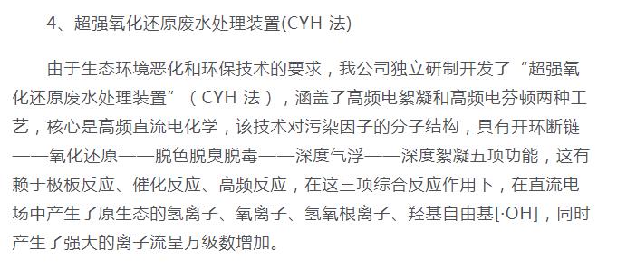 超強(qiáng)氧化還原廢水處理裝置(CYH法)處理各種有機(jī)廢水、各種重金屬廢水