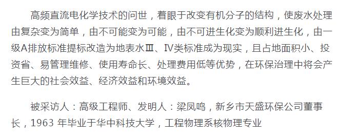 中國高新技術(shù)網(wǎng)發(fā)布:《關(guān)注:解碼科技創(chuàng)新》——新鄉(xiāng)市天盛環(huán)?!俺瑥?qiáng)氧化還原廢水處理技術(shù)”